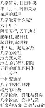 Different Categories of [Ba Zi]
